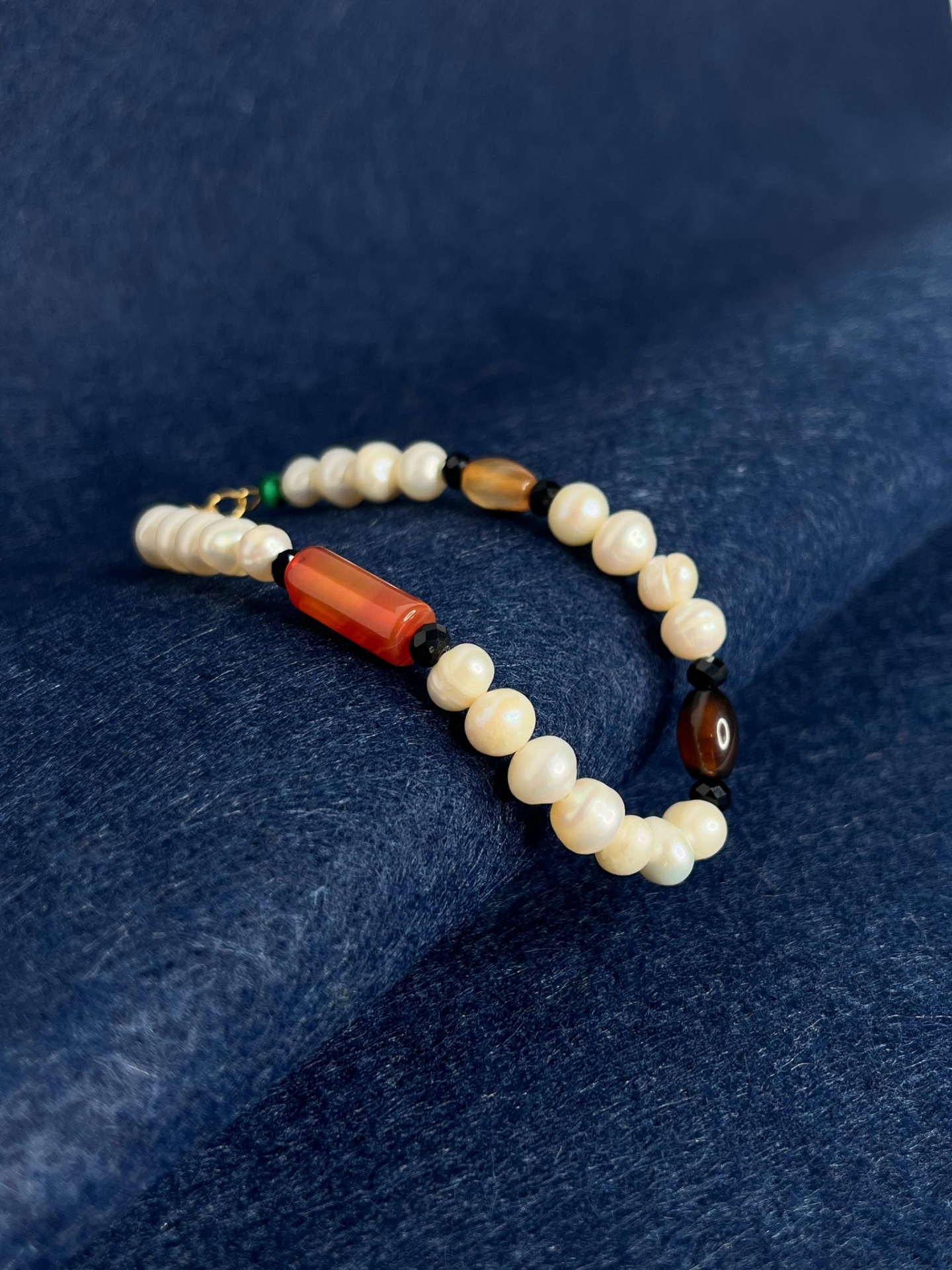 PEARL Natural Stones Bracelet 27,95 € Desconto de %. Partilhar Size 21cm (Universal) 19cm 23cm Comprar Contactar Natural Stones Bracelet • Pearl Natural Stones• Small Onyx Natural Stones• 1 Cylinder Red Tiger Eye Natural Stone• 2 Cylinders Brown Tiger Eye Natural Stones• 18K Gold Plated Premium Stainless Steel 316L Troppo Dettagli Pendant