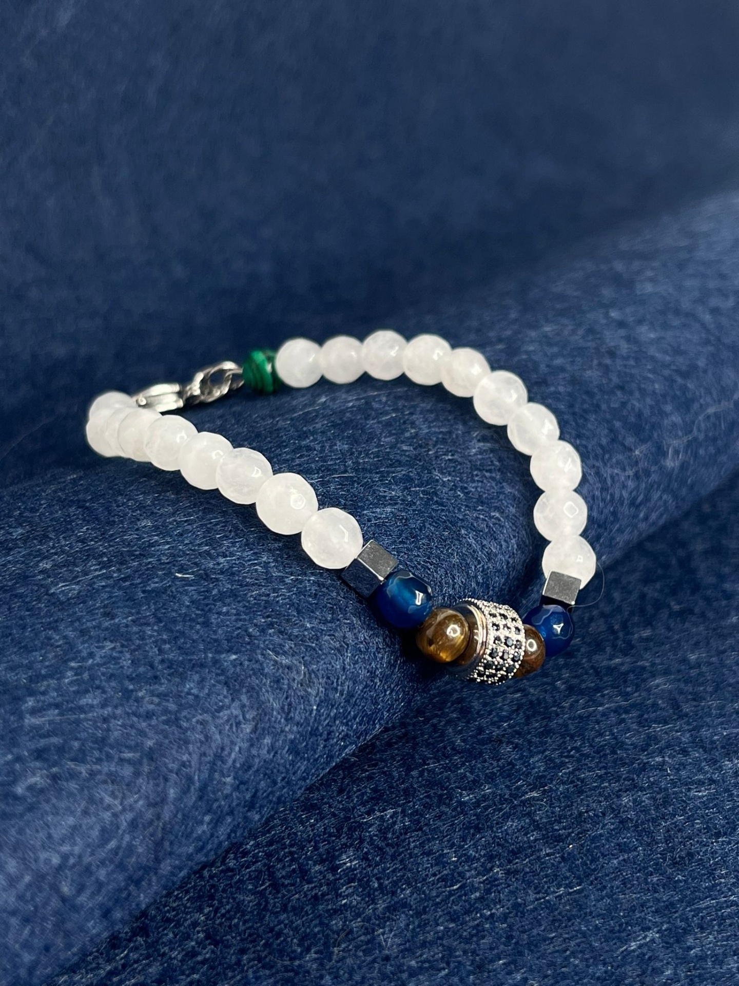 WHITESHINE Natural Stones Bracelet 32,95 € Desconto de %. Partilhar O produto encontra-se sem stock. Natural Stones Bracelet • White Quartz Natural Stones• 2 Blue Lapis Natural Stones• 2 Brown Tiger Eye Natural Stones• Premium Stainless Steel 316L Squares• Premium Stainless Steel 316L Zirconias Cylinder• Premium Stainless Steel 316L Troppo Dettagli Pendant