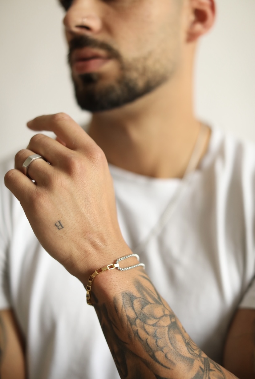 DOUBLERECTGOLDSILVER Stainless Steel Bracelet 27,95 € Desconto de %. Partilhar Size 21cm (Universal) 19cm 23cm Comprar Contactar • Stainless Steel 316L Bracelet • Premium Stainless Steel 316L Chain• 18K Gold Plated Premium Stainless Steel 316L Square's Chain• Premium Stainless Steel 316L Troppo Dettagli Pendant
