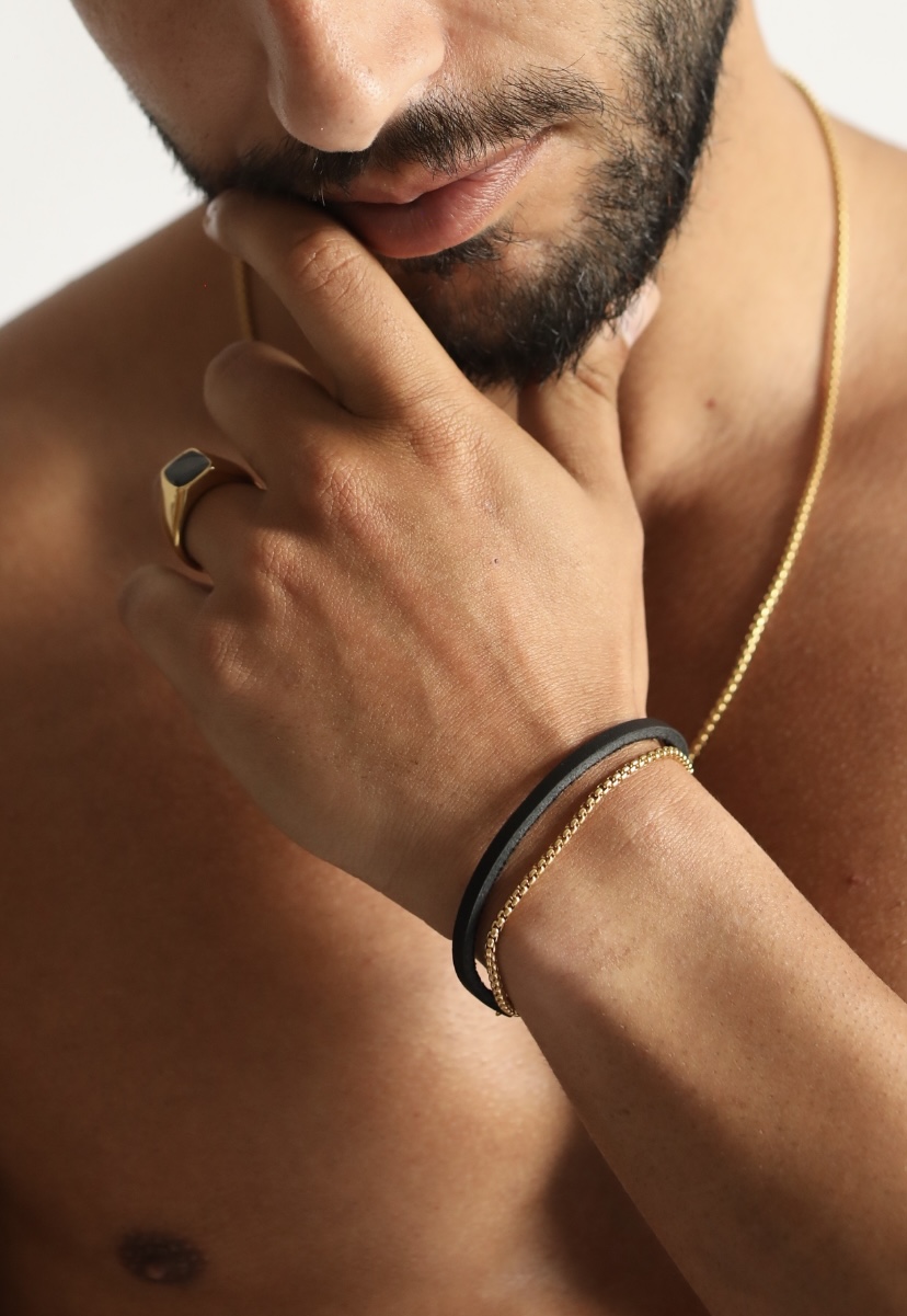 DOUBLEBLACKGOLD 100% Genuine Leather & Stainless Steel Bracelet 32,95 € Desconto de %. Partilhar Size 21cm (Universal) 19cm 23cm Comprar Contactar Genuine Leather Bracelet • Black Genuine Leather• 18K Gold Plated Premium Stainless Steel 316L Chain• 18K Gold Plated Premium Stainless Steel 316L Troppo Dettagli Pendant