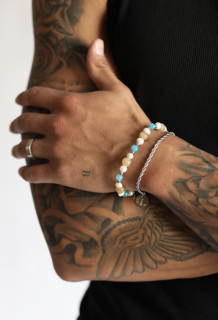 BEIGEPEARLTURQUOISE Natural Stones Bracelet 24,95 € Desconto de %. Partilhar Size 21cm (Universal) 19cm 23cm Comprar Contactar • Natural Stones Bracelet • Pearl Natural Stones• Turquoise Agate Natural Stones• Beige Agate Natural Stones• Premium Stainless Steel 316L Balls• Premium Stainless Steel 316L Troppo Dettagli Pendant