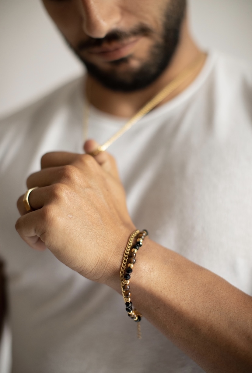 BLACKTIGERGOLD Natural Stones Bracelet 24,95 € Desconto de %. Partilhar Size 21cm (Universal) 19cm 23cm Comprar Contactar • Natural Stones Bracelet • Onyx Natural Stones• Brown Tiger Eye Natural Stones• Square Hematite Natural Stones• 18K Gold Plated Premium Stainless Steel 316L Balls• 18K Gold Plated Premium Stainless Steel 316L Troppo Dettagli Pendant