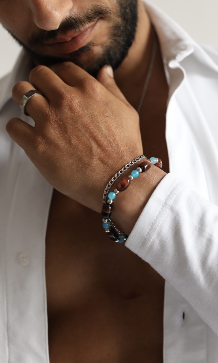 TIGERTURQUOISE Natural Stones Bracelet 13,98 € 27,95 € Desconto de %. Partilhar Size 21cm (Universal) 19cm 23cm Comprar Contactar • Natural Stones Bracelet • Cylinder Red Tiger Eye Natural Stones• Turquoise Agate Natural Stones• Premium Stainless Steel 316L Balls• Premium Stainless Steel 316L Troppo Dettagli Pendant