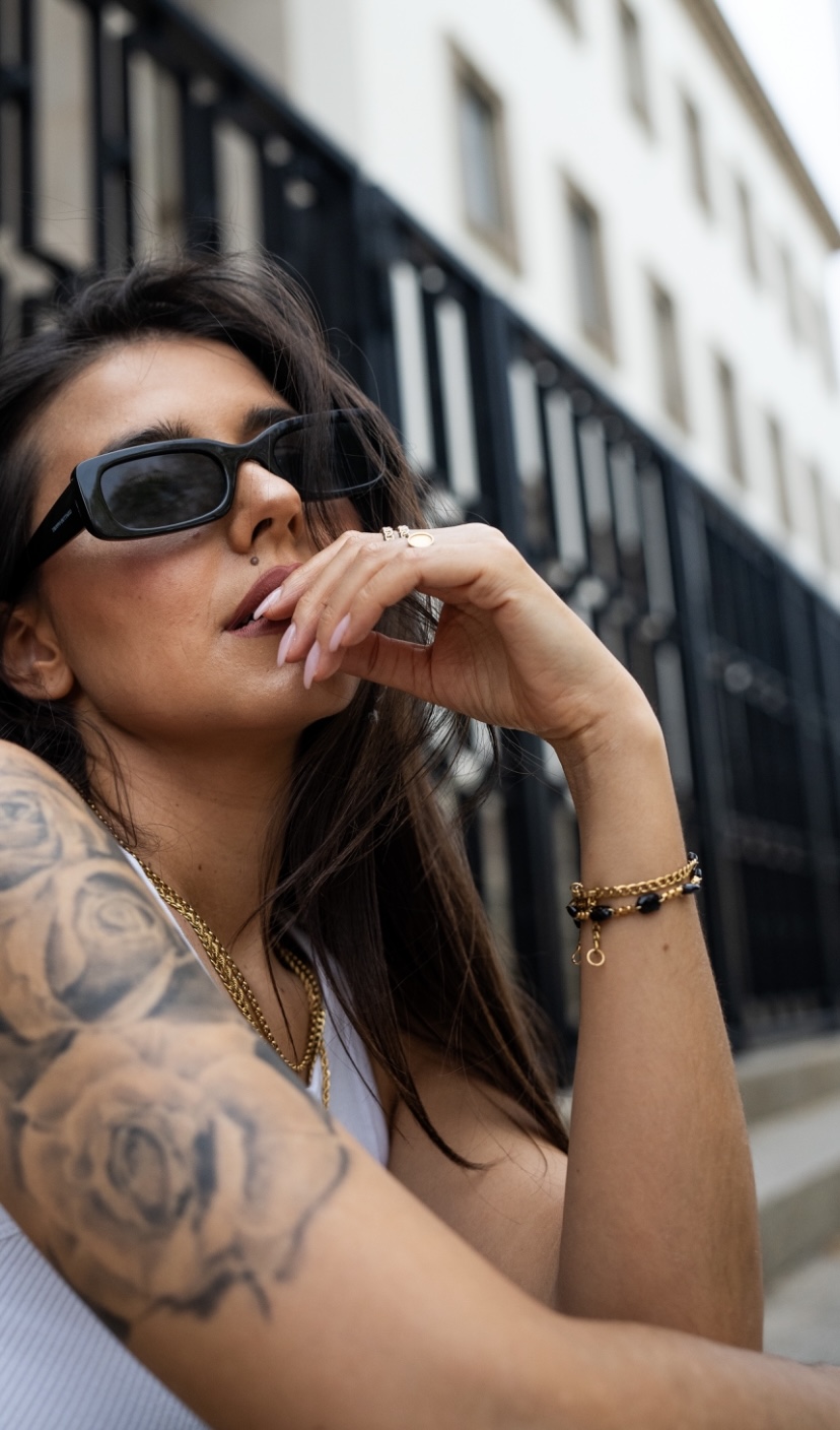 BLACKMINIMALACRYLGOLD Stainless Steel & Acryl Crystal Stones Bracelet 39,90 € Desconto de %. Partilhar Size 21cm (Universal) 19cm 23cm Comprar Contactar Acryl Crystal Stones Bracelet • 18K Gold Plated Premium Stainless Steel 316L Chain• Black Acryl Crystals• 18K Gold Plated Premium Stainless Steel 316L Troppo Dettagli Pendant