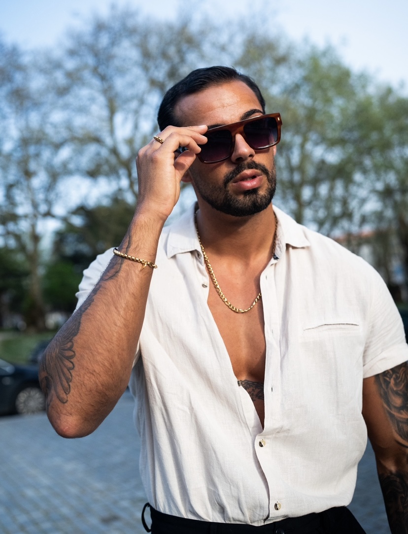 MANCHESTER BROWN Sunglasses 69,90 € Desconto de %. Partilhar Comprar Contactar Sunglasses • Polarized Lens• UV Protection - UV400 Category 3• Black Faded Lens• Square Frame Shape• Black / Tiger Brown Acetate Arm• Troppo Dettagli Stripes Detail
