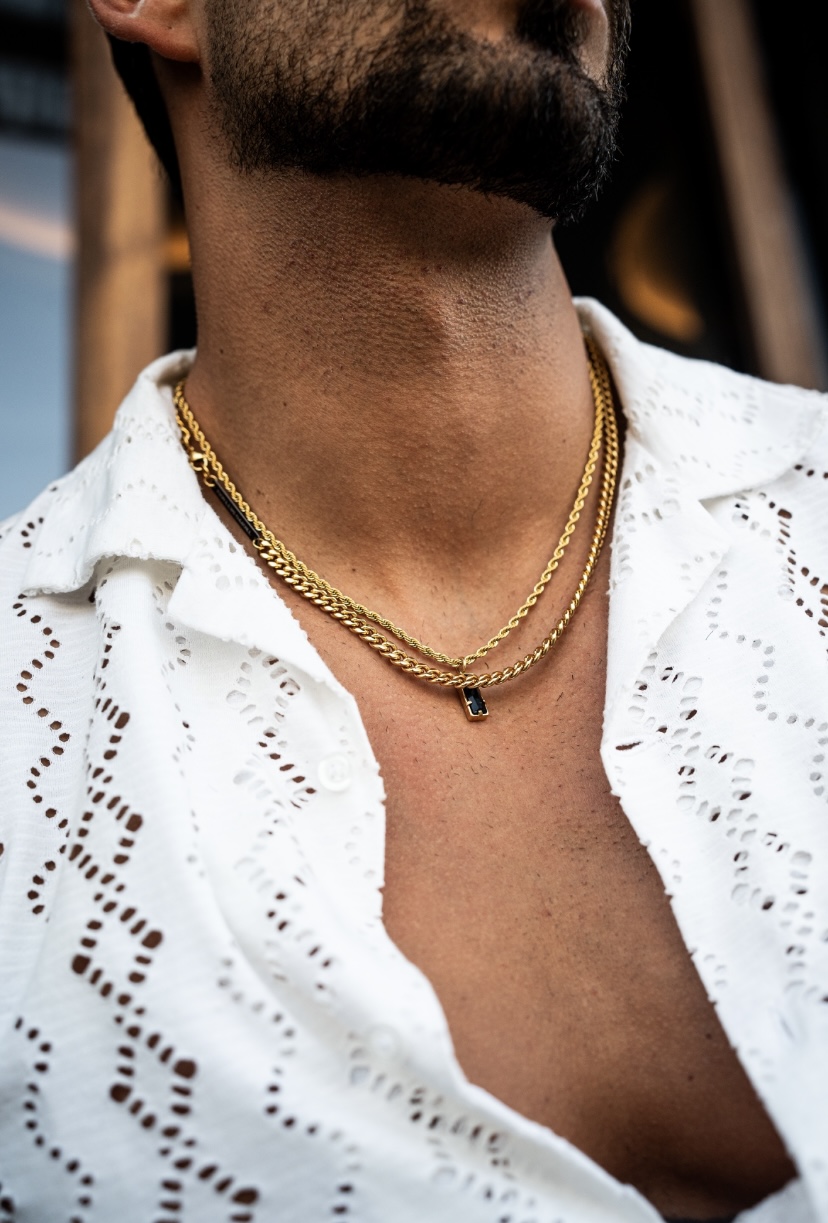 ROPESHINEBLACKGOLD Stainless Steel Necklace 27,95 € Desconto de %. Partilhar Size 60cm (Universal) 55cm Comprar Contactar Stainless Steel 316L Bracelet • 18K Gold Plated Premium Stainless Steel 316L Chain• 18K Gold Plated Premium Stainless Steel 316L Pendant w/ Black Zirconia• 18K Gold Plated Premium Stainless Steel 316L Troppo Dettagli Pendant